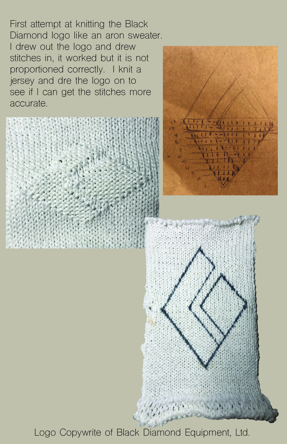 The brand I decided to use for my project is Black Diamond. I feel like they have a few lifestyle pieces for sale currently but that they can expand it greatly. I also have ideas for cool backpacks and shoes for climbers so I will be doing accessories in this collection as well as lifestyle. I have chosen a color pallete but I am not sure about it, so if anyone has suggestions let me know. The page after my color pallete is the beginning of my customer profile, I am surveying people and interviewing people for a more in depth customer profile. Fabrics wise I am unsure what to do, the fabrics I currently have are inferior to what Black Diamond uses, however I found a new website to order from so once those swatches come in I will see what I have to work with there. I also have pictures of swatches from the materials library that I took when I was researching that I may use in the collection, they are included at the end of my images. Also included at the end is a sample of a Black Diamond logo I knitted but did not get the proportions correct, so it is still a work in progress. There are also inspiration images for my shoe design, I noticed that a lot of shoes for varying sports use BOA laces and I want to implement that into my designs.